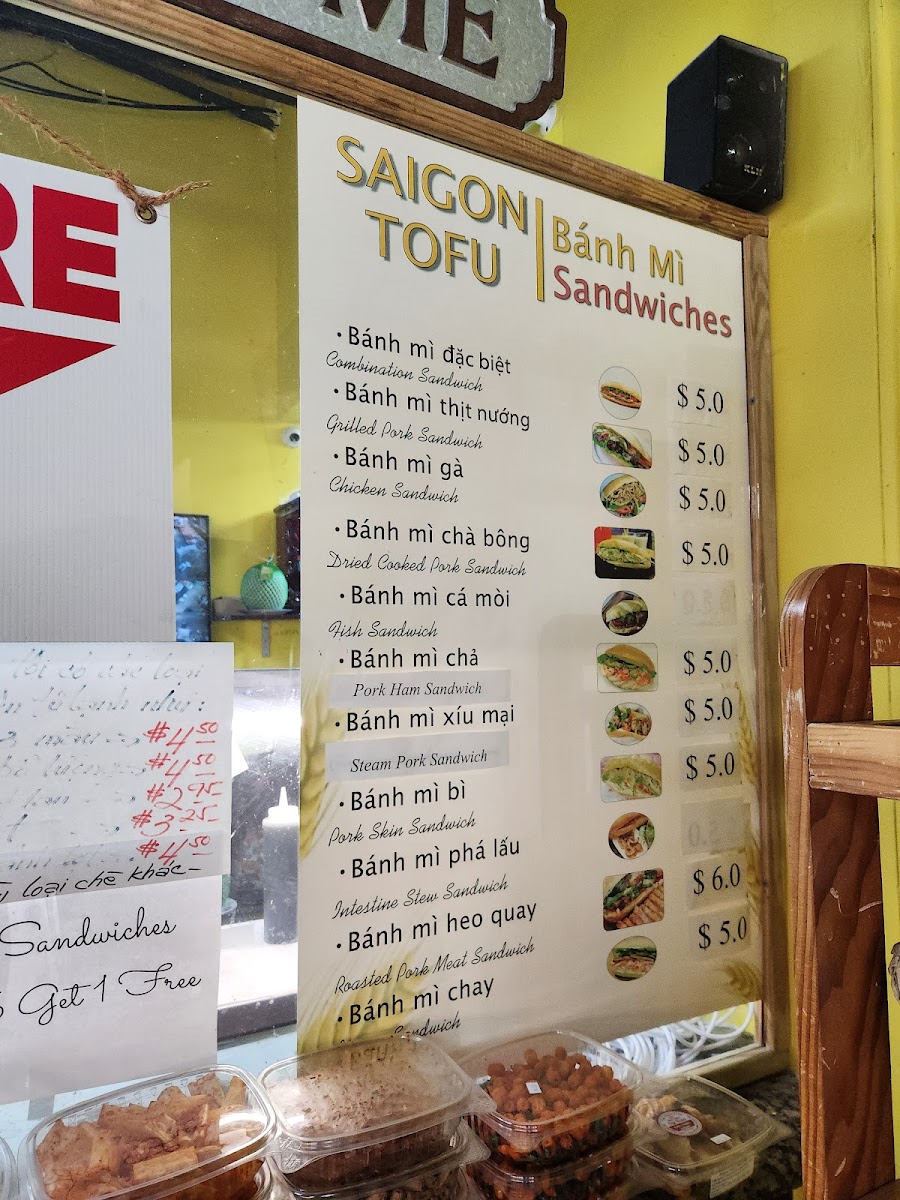 Saigon Tofu offers a diverse and flavorful menu, perfect for those craving authentic Vietnamese tastes. For coffee lovers, the Black Coffee and Milk Coffee provide a rich, bold experience. Their refreshing drinks include the Sugar Cane Juice, a sweet, invigorating choice, and the Pudding Tofu, which delivers a creamy, smooth texture. The sandwich selection stands out with options like the Vietnamese Pork Ham, Pork Meat Ball, Sardin BBQ Pork, and Shredded Chicken sandwiches. Each dish brings a unique taste, showcasing traditional Vietnamese flavors. Whether you're stopping by for a quick bite or a satisfying meal, Saigon Tofu's menu offers something to suit every preference.